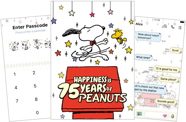 スヌーピーLINE公式アカウントでは、誕生75周年を記念して、ファンのみなさんにさまざまなコンテンツをお届けします。